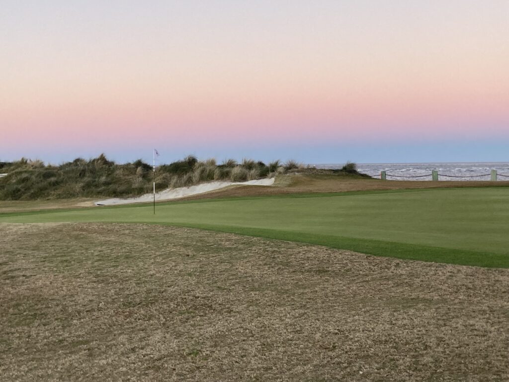 At No. 18, the ocean hugs the left side of the rock-lined fairway with new native plants and grasses splashed with pot bunkers providing other hazards.